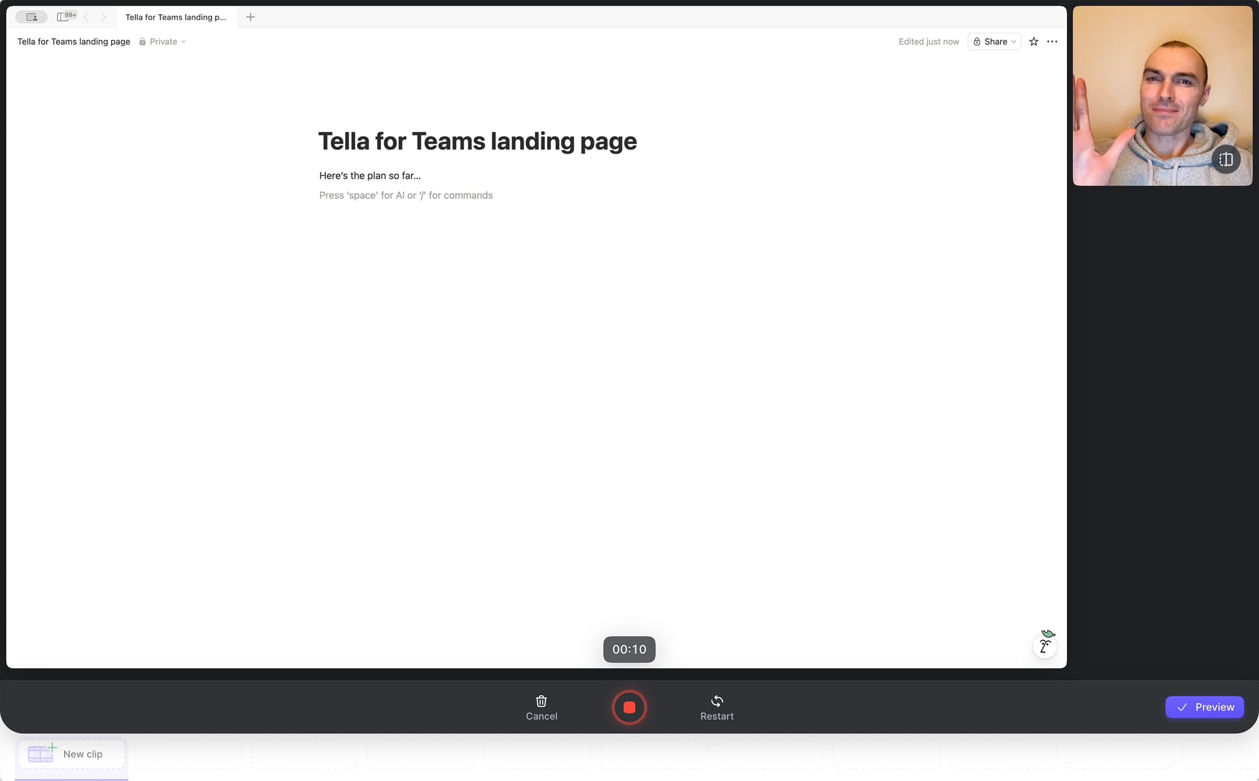 Screen, camera, or both — Tella's recorder captures everything you need in one take. No installs, no complexity.
